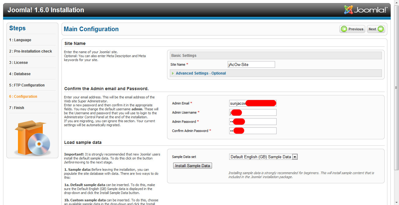 07. Jika anda sudah mengisi semua form dengan benar, klik Install Sample Data. Maka akan muncul tampilan seperti gambar di bawah. Lalu klik Next.